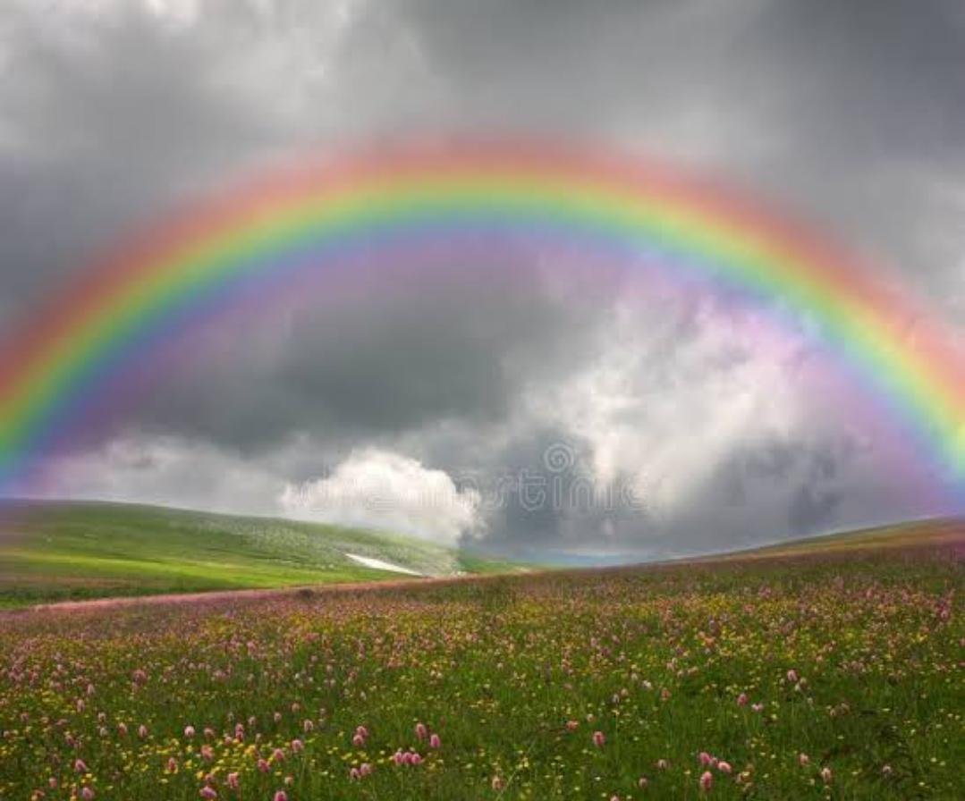 A rainbow is a stunning natural phenomenon that appears as a multicolored arc in the sky, typically seen after rainfall when the sun shines through the falling droplets. This beautiful sight is actually sunlight being refracted and reflected by the water droplets, splitting the white light into its constituent colors: red, orange, yellow, green, blue, indigo, and violet (VIBGYOR). Rainbows are often viewed as a symbol of hope and beauty, and their appearance can evoke feelings of wonder and joy. They are typically seen as a semicircle, but from an elevated viewpoint like an airplane, they can be seen as a full circle.