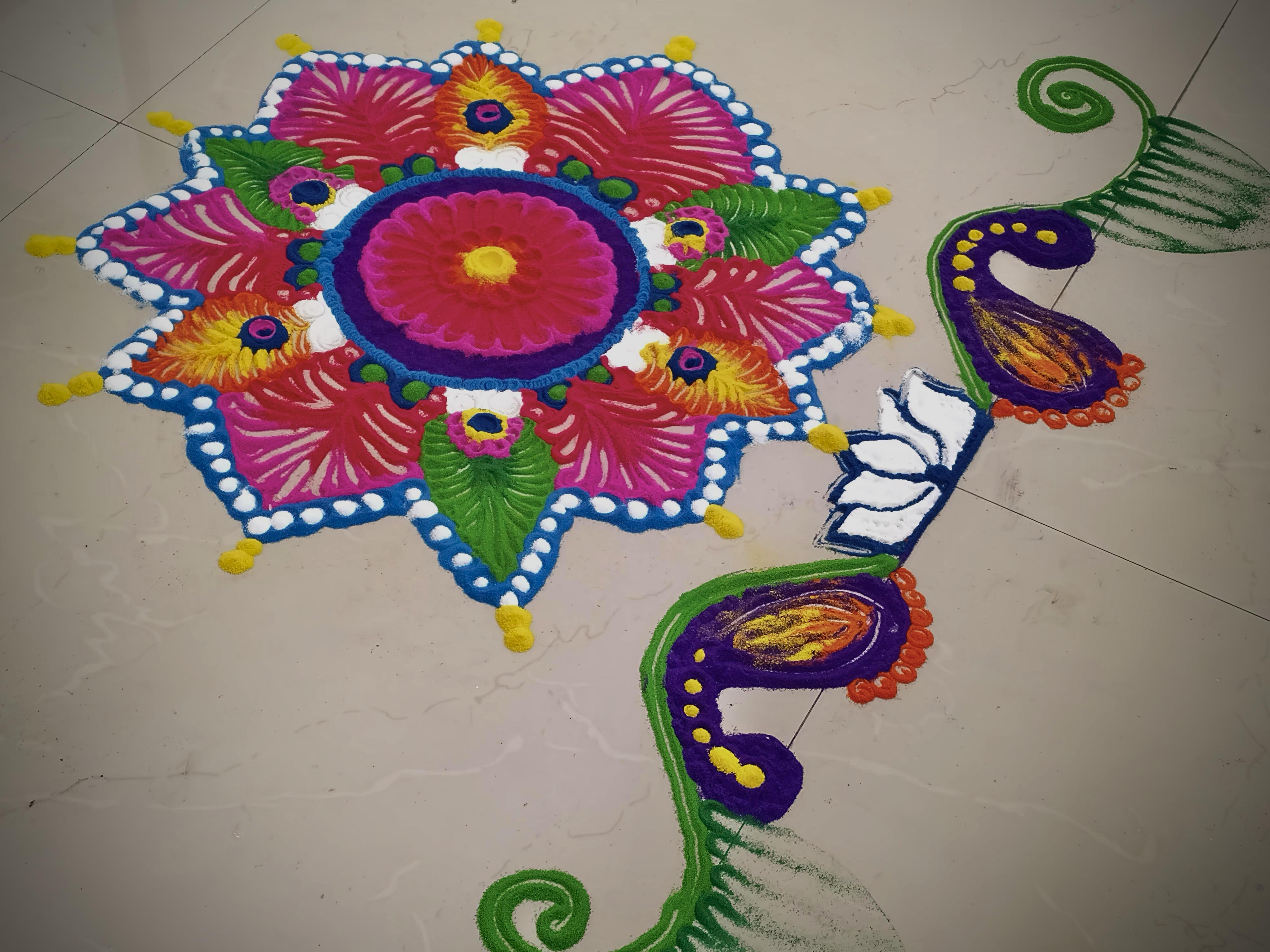 Putting some extra sparkle and good vibes into the world with this year's rangoli. It's a labor of love and a beautiful way to welcome happiness and prosperity. Every pinch of color is a wish for a better tomorrow.