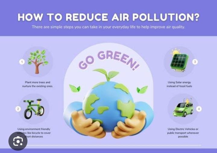 We can also reduce pollution by using public transport, walking, or cycling instead of using private vehicles. This helps to reduce air pollution caused by smoke from vehicles.
