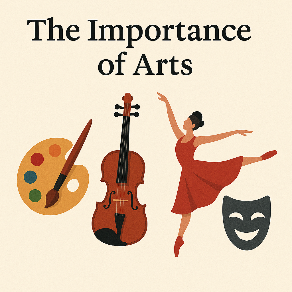 Arts make life more beautiful and meaningful. They help us understand different cultures and express our feelings. In schools, learning arts improves creativity, confidence, and teamwork.
